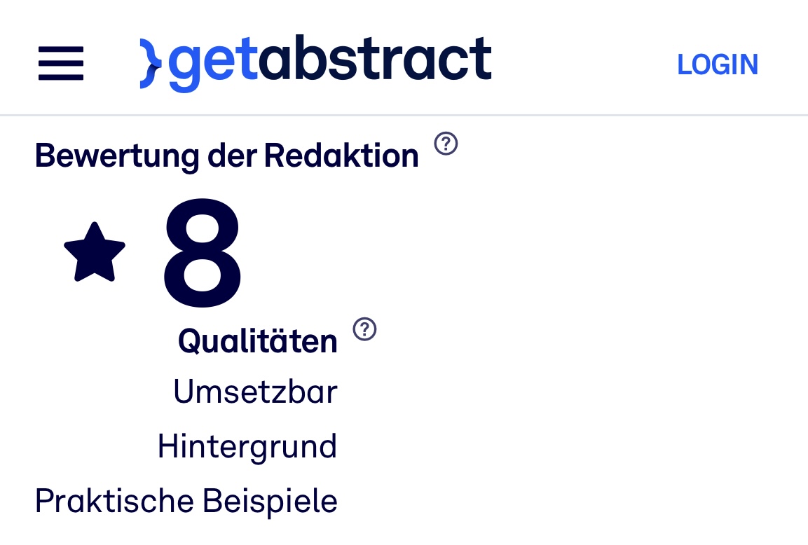 Laut wikipedia trifft getAbstract ihre Auswahl der nach ihrer Einschätzung wichtigsten Neuerscheinungen im Wirtschaftsbereich hinsichtlich der Kriterien Anwendbarkeit, Innovation und Stil. Die Kernaussagen dieser Werke werden in Form von Kurzreferaten (Abstract) auf fünf Seiten zusammengefasst. Dazu arbeiten sie weltweit mit führenden Verlagen, Autoren und Autorinnen zusammen, um Expertenwissen direkt im Arbeitsalltag bereitzustellen.